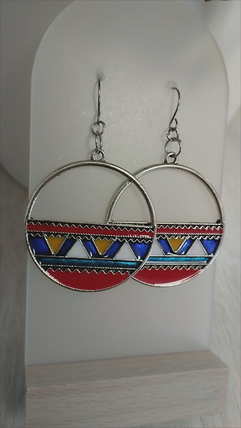 Our Sibu Circular drop earrings are simply gorgeous. Featuring stunningly vibrant oil drip colours, these earrings are just the right accessory to make your outfit pop.